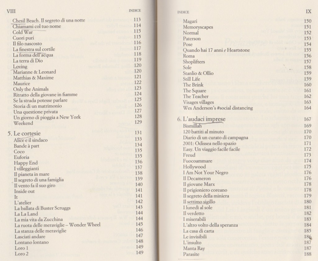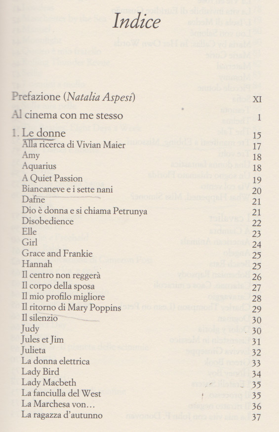 Nella prefazione, Natalia Aspesi scrive che vorrebbe sapere quali sono i suoi film indimenticabili e se ce n’è uno che non ha analizzato per non compromettere la beatitudine del guardarlo da semplice spettatore, oppure per semplice rifiuto.