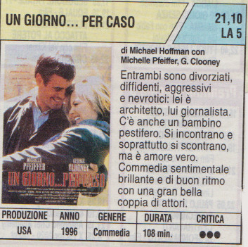 UN GIORNO … PER CASO, di Michael Hoffman, con Michelle Pfeiffer, G. Clooney, 1996