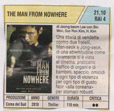 THE MAN FROM NOWHERE, di Jeong-beom Lee, con Bin Won, Sae Ron Kim, H. Kim, 2010