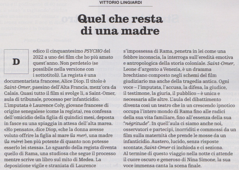 SAINT OMER, di Alice Diop, con Kayije Kagame, Guslagie Malanga. La “lettura” di Vittorio Lingiardi