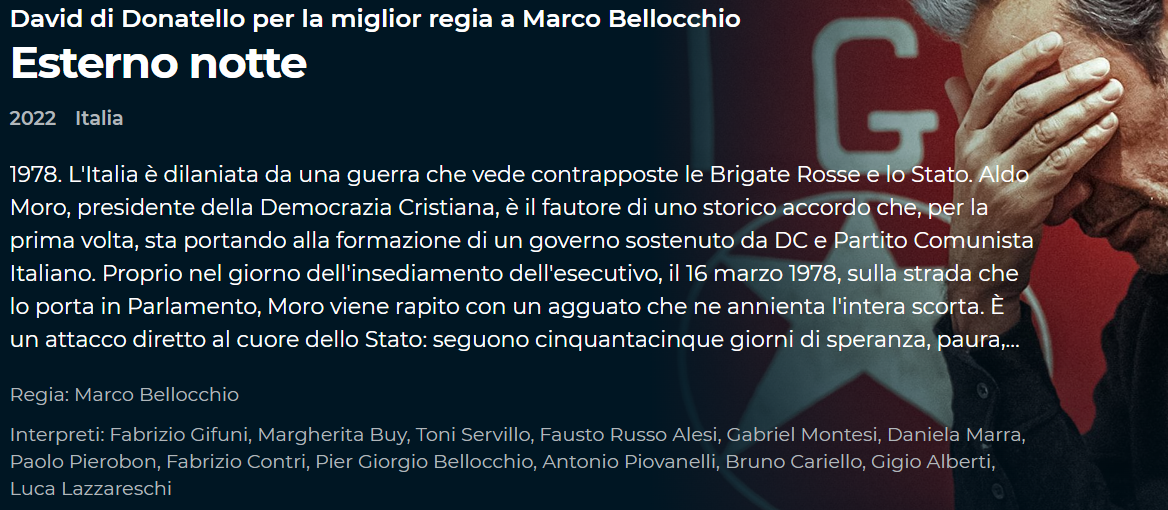 1978. L’Italia è dilaniata da una guerra che vede contrapposte le Brigate Rosse e lo Stato. Aldo Moro, presidente della Democrazia Cristiana, è il fautore di uno storico accordo che, per la prima volta, sta portando alla formazione di un governo sostenuto da DC e Partito Comunista Italiano. Proprio nel giorno dell’insediamento dell’esecutivo, il 16 marzo 1978, sulla strada che lo porta in Parlamento, Moro viene rapito con un agguato che ne annienta l’intera scorta. È un attacco diretto al cuore dello Stato: seguono cinquantacinque giorni di speranza, paura