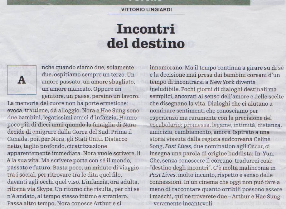 La pagella del Mereghetti : «Past Lives», due vite sempre incrociate: l’amore interrotto dal destino- Corriere.it