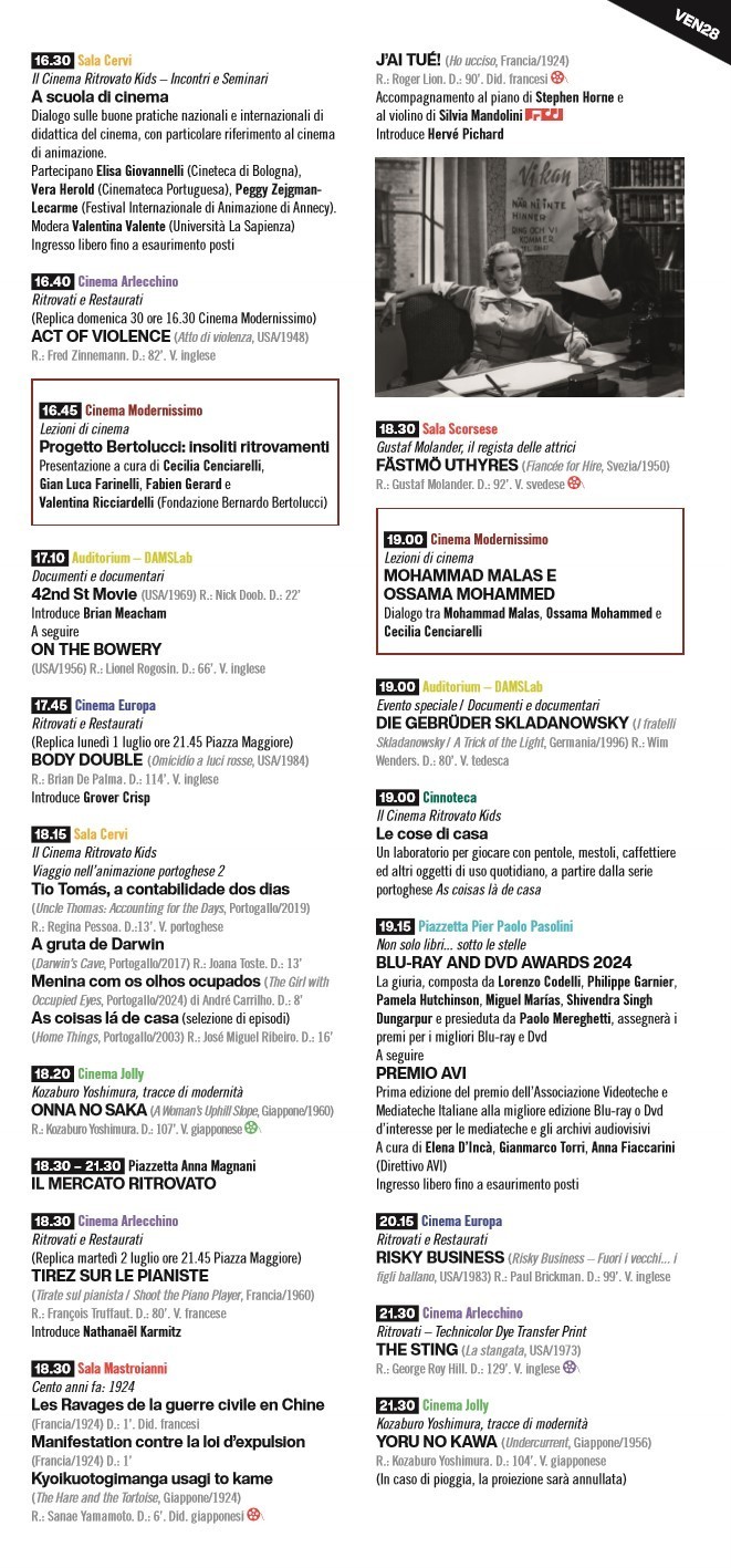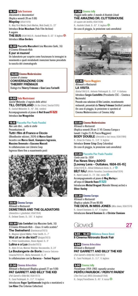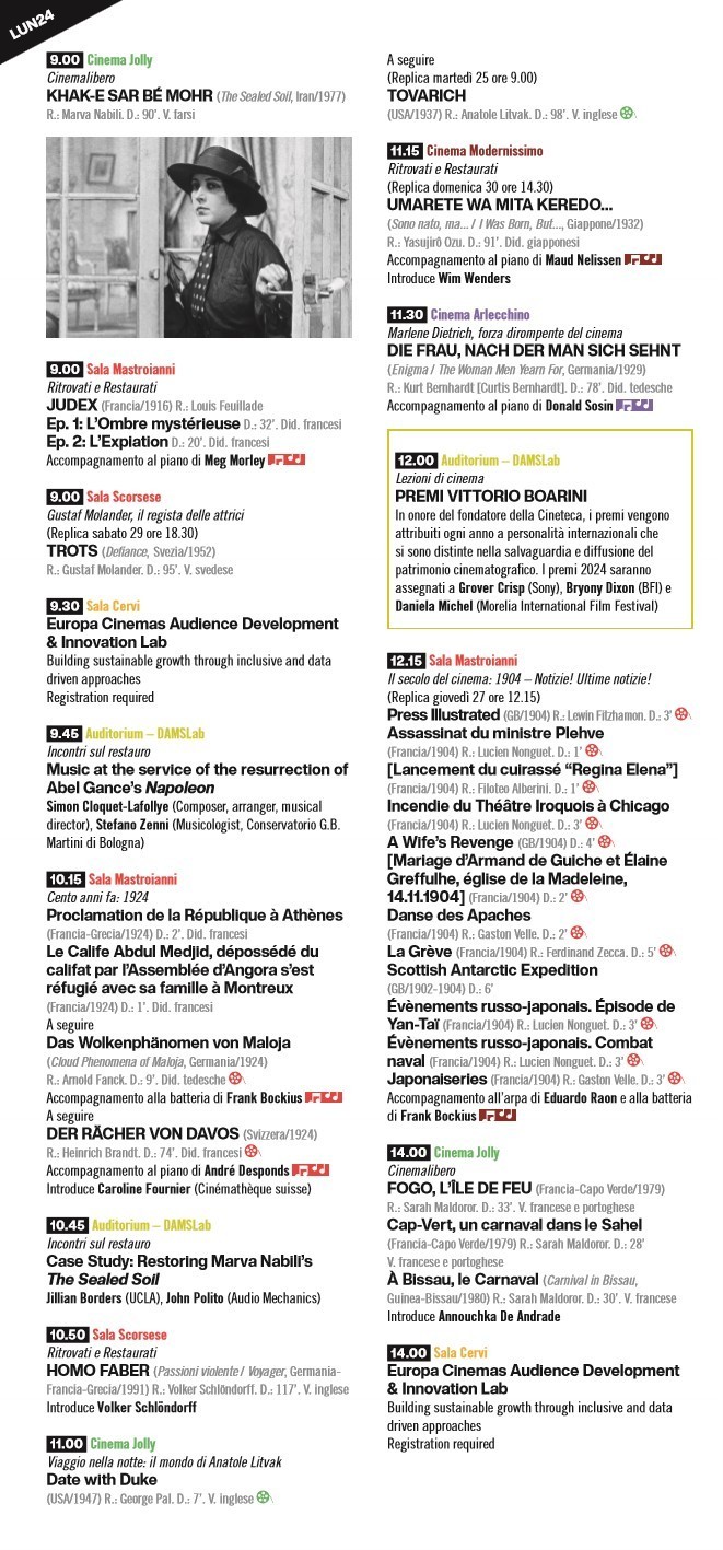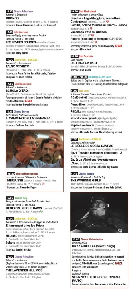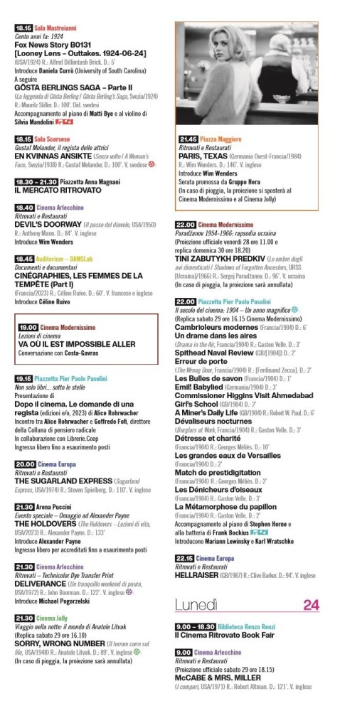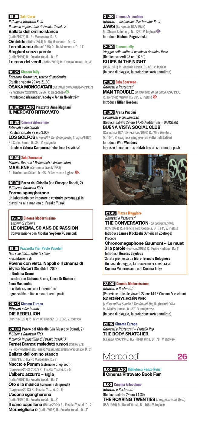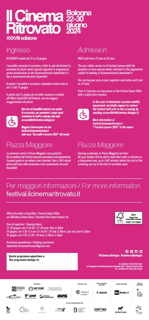 15 Giu 202415 Giu 2024 Paolo Ferrario IL CINEMA RITROVATO, XXXVIII edizione del festival, Bologna, 22-30 giugno 2024 vai al sito e al programma: Homepage il programma in formato pdf: Fai clic per accedere a CR2024_programma.pdf Condividi: Fai clic per condividere su Facebook (Si apre in una nuova finestra) Facebook Fai clic qui per condividere su LinkedIn (Si apre in una nuova finestra) LinkedIn Fai clic qui per condividere su Tumblr (Si apre in una nuova finestra) Tumblr Fai clic per condividere su WhatsApp (Si apre in una nuova finestra) WhatsApp Fai clic per inviare un link a un amico via e-mail (Si apre in una nuova finestra) E-mail Fai clic qui per stampare (Si apre in una nuova finestra) Stampa Fai clic qui per condividere su Pinterest (Si apre in una nuova finestra) Pinterest Fai clic per condividere su Threads (Si apre in una nuova finestra) Threads Fai clic per condividere su Bluesky (Si apre in una nuova finestra) Bluesky Mi piace Caricamento... Correlati