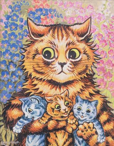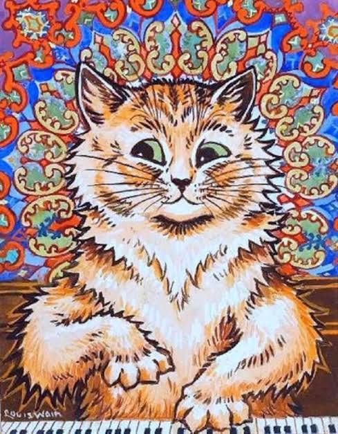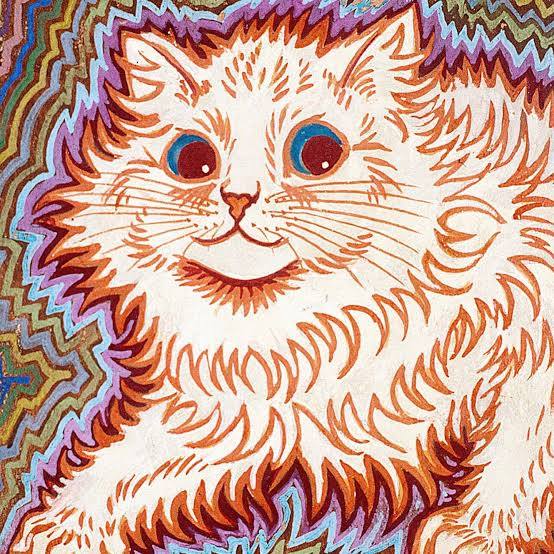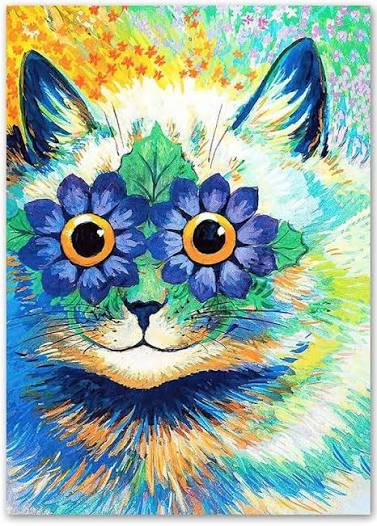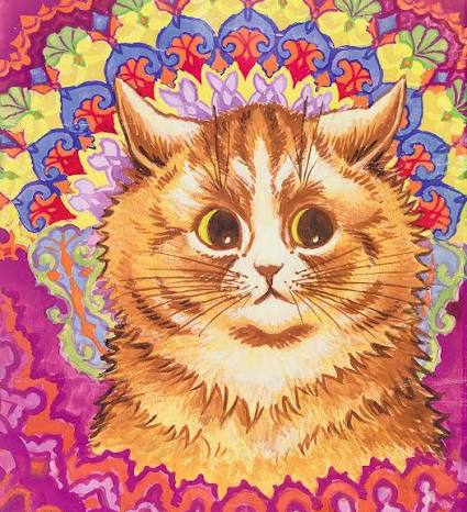 - Gatti “Elettrici” e Psichedelici: Con il passare degli anni, il suo stile è diventato più astratto e vibrante. Queste immagini presentano motivi a caleidoscopio e colori accesi, spesso interpretate come riflesso della sua salute mentale precaria (gli fu diagnosticata la schizofrenia).