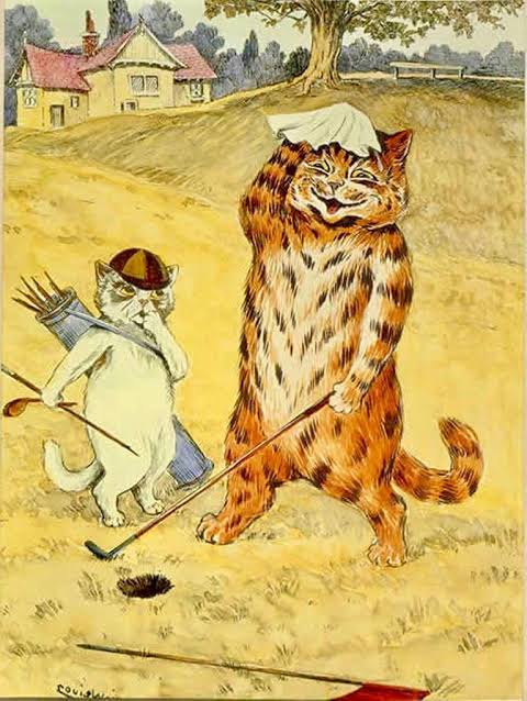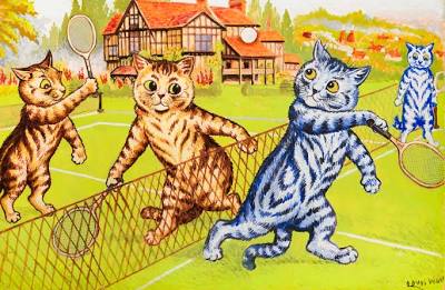 - Gatti Antropomorfi: Le sue opere più famose ritraggono gatti che camminano su due zampe, indossano abiti eleganti e partecipano ad attività umane come giocare a tennis, prendere il tè o suonare strumenti musicali.