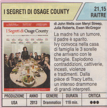 I SEGRETI DI OSAGE COUNTRY, di John Wells, con Meryl Streep, Julia Roberts, Evan Mc Gregor, 2013