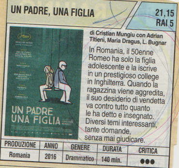 UN PADRE, UNA FIGLIA, di Cristian Mungiu, con Adrian Titieni, Maria Dragus, L. Bugnar, 2016
