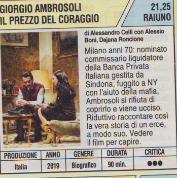 GIORGIO AMBROSOLI. IL PREZZO DEL CORAGGIO, di Alessandro Celli, con Alessio Boni, Dajana Roncione, 2019