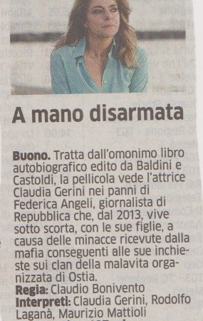 A MANO DISARMATA: la storia di Federica Angeli, giornalista antimafia di Ostia nel film di Claudio Bonivento con Claudia Gerini – Video – Rai News, 6 giugno 2019