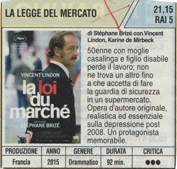 LA LEGGE DEL MERCATO, di Stephane Brizè, con Vincent Lindon, Karine de Mirbeck, 2015