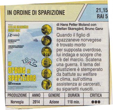 IN ORDINE DI SPARIZIONE, DI Hans Petter Moland; con Stellan Skarsgård, Bruno Ganz, Kristofer Hivju, Jakob Oftebro, Pål Sverre Valheim Hagen, Birgitte Hjort Sørensen, 2014