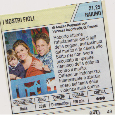 I NOSTRI FIGLI, di Andrea Porporati, con Vanessa Incontrada, G. Pasotti, 2018