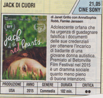 JACK DI CUORI (Jack of the Red Hearts), di Janet Grillo, con AnnaSophia Robb, Famke Jansen, 2015